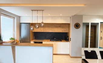 - zabudowa meblowa na wymiar wysokiej jakości, w lakierze, w całym mieszkaniu – maksymalne wykorzystanie przestrzeni i potencjału pomieszczeń