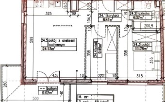- salon z aneksem kuchennym – 24,13 m2